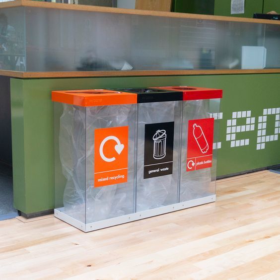 • Chất liệu : thân bằng mica dày 5mm, nắp thùng rác làm bằng thép phun sơn tĩnh điện, đế thùng rác bằng thép. dùng để cố định các thùng rác xếp sát nhau